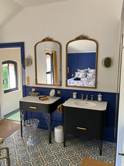 Vous accéderez à l'étage par un magnifique escalier au design unique, spécialement imaginé et créé pour les besoins du lieu. Une passerelle en verre, surplombant le salon vous mènera tout droit à la chambre. Cette dernière se compose d'un espace dédié au bien-être et à la beauté avec une douche, une baignoire îlot monté sur pieds, un meuble vasque et une coiffeuse ; le tout posé sur un magnifique sol en carreaux de ciment. Vous pourrez vous reposer dans un lit Queen size avec du linge rigoureusement sélectionné. Un coin dressing et un espace sanitaire viennent compléter cet espace se dissociant du précédent par un magnifique parquet en chevron.